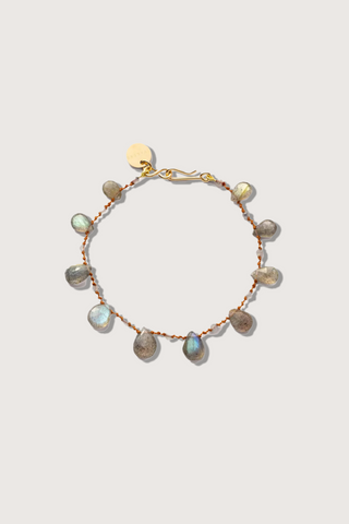 The 'Odin' labradorite bracelet captures the magic of light with its iridescent reflections. Each stone, carefully cut, reveals changing shades of blue, green and gray, like an aurora borealis frozen in stone. Labradorite, known for its protective and soothing properties, awakens creativity and strengthens intuition.