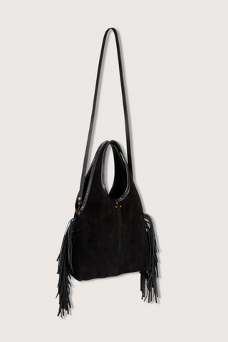 Soft tote suede fringe bag with round handles, worn over the shoulder, by hand, or crossbody with its removable shoulder strap. Removable shoulder strap length: 100 cm. If needed, Paco S is compatible with all the other straps.